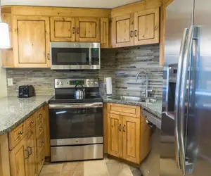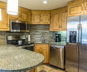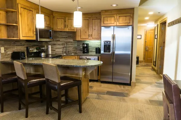 Two Bedroom suite features a full kitchen with living and dining space. Sleeper sofa and 2 daybeds offer additional space for people to sleep. With over 1,000 square feet of luxurious living space, a full-sized kitchen, and dining space for 6 people, your dream of experiencing mountain luxury becomes a reality. Additional amenities include in-building washer and dryer, a living area with exceptional views, daily housekeeping, underground parking, a dry sauna, and conveniently located footsteps away from the Orange Bubble Express.