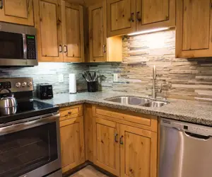 • One Bedroom suite features a full kitchen with living and dining space. Sleeper sofa and 2 daybeds offer additional space for people to sleep. With a spacious living area, a full-sized kitchen, and dining space for 4 people, your dream of experiencing mountain luxury becomes a reality. Additional amenities include in-building washer and dryer, a living area, daily housekeeping, underground parking, a dry sauna, and conveniently located footsteps away from the Orange Bubble Express.