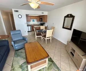 This 6th floor unit has a brand new sofa sleeper with thick foam mattress as of 7/26/21, reclining chair in the living room, as well as flat screen TV's in the living room and bedroom. There are tile floors throughout the condo and a fully equipped kitchen for preparing meals.