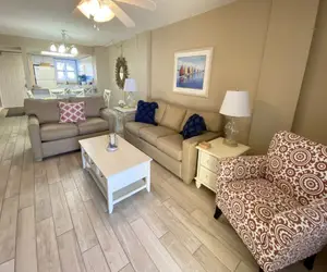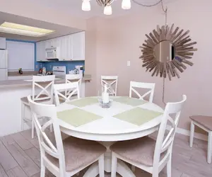 The fully equipped kitchen and dining area make it easy to prepare meals and gather with family or friends after a day at the beach. With plenty of room and modern conveniences, this condo blends comfort with coastal charm.