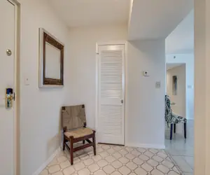 This 3 bedroom condo is perfect for a family and comfortably sleeps 8. Nice view of the pool and grill area from the balcony. The primary bedroom offers a mid-century King bed and bath with walk in shower and open closet. The second bedroom has a Queen bed and two twin beds are in the third bedroom. There is also a sleeper sofa in the den.