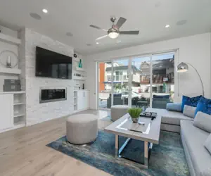 This 4 bedroom, 5 bathroom corner home sits on Newport Beach's Balboa peninsula with expansive views of the ocean, Catalina Island, and all of the beautiful sights that Newport has to offer. Just a few houses away from the sand, this home was built by renowned builder Berk Properties and completed in 2018. It is one of the nicest and most expansive homes available for vacationing families in the city!