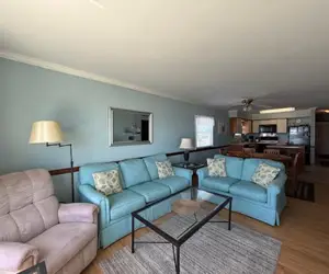 The building has an elevator, an indoor heated pool, and free wireless Internet. There's a spacious outdoor area for family games, and bocce ball, corn hole, horseshoes, and ladder ball are available for rent. There's one assigned parking spot, and the condo is non-smoking. Linens, surfboards, beach chairs, boogie boards, bicycles, coolers, beach umbrellas, kayaks, and more are available for rent, with free delivery to and from your oceanfront condo. The condo is motorcycle friendly, but there's no trailer parking on the property. Early check-in may be available for a nominal fee. Brochures and discount coupons to area attractions are also available.