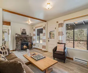 Step into the family room, which features a warming electric fireplace, perfect for taking the chill off cool mountain nights. The cushy Queen sleeper sofa provides an extra sleeping spot for your family or friends. A flat-screen TV provides entertainment for your vacation.