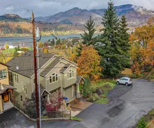 Welcome to Three Rivers, a splendid retreat where breathtaking views meet modern comfort. This 3-bedroom, 2-bath home comfortably accommodates up to seven guests, offering a panoramic vista of the Columbia, Hood, and White Salmon Rivers. Whether you're starting your day with a coffee on the multi-level decks or unwinding after an adventure-filled afternoon, this property offers a serene backdrop for your getaway.