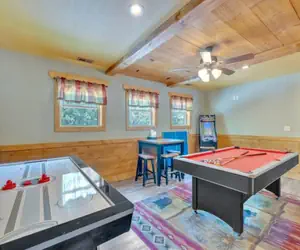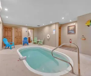 Entertainment options abound in this exquisite chalet. The indoor pool offers year-round enjoyment, while the game room is equipped with a pool table, air hockey, and a multicade, ensuring endless fun for guests of all ages.