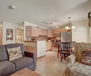 The studio condominium is 450 square feet and features a queen murphy bed and queen sleeper sofa in the living area and full bathroom. There is the convenience of a washer and dryer and a fully-equipped kitchen, allowing guests to enjoy the comfort of in-room meals. The dining room table and breakfast bar provides plenty of additional seating.