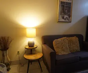 The bedroom is accommodated with a king size bed, in-room 2 person jacuzzi, and gas fireplace for your enjoyment.