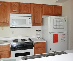 Two bedroom adjoining a large, open great room that encompasses the full kitchen, dining and living area and includes the full-length balcony. The kitchen is equipped with a microwave, dishwasher, stove/oven, refrigerator, coffee maker, and toaster. Each unit is furnished with a basic set of pots and pans, utensils and dishes, cups and glasses. You also have a full-size, stackable washer and dryer in your unit.