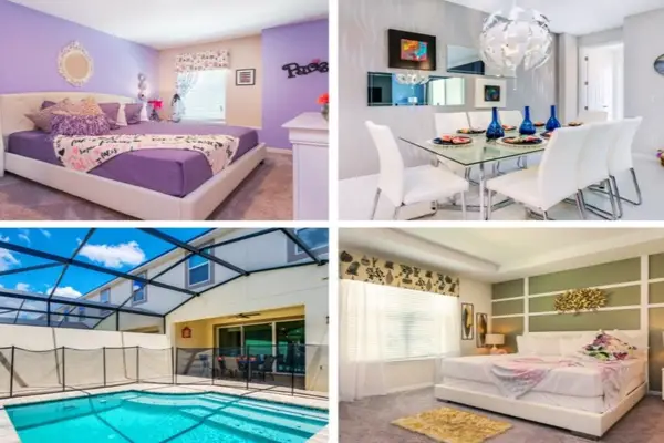 Lounge around after a long day at the parks in the open floor plan gathering room featuring sectional sofas and a large 50-inch flat screen TV. Step outside onto the patio to enjoy your very own private Splash Pool with screened enclosure that also has a 1/2 bath.