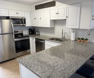 When it’s time to eat breakfast, lunch, or dinner, you’ll be happy with the kitchen. We have what you need to prepare your meals. The kitchen has a coffee maker, dishwasher, and microwave, just to name a few.