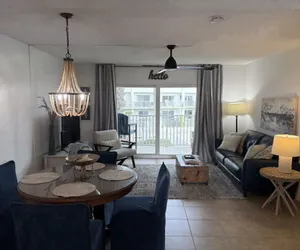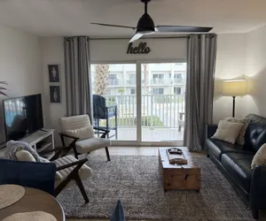 The bedrooms are designed for maximum privacy located on the second floor of the condo. The master suite is spacious and contains a new king-size motion/temper pedic bed with your own flat-screen Smart TV. It also has a sink for your convenience. The second bedroom offers an additional king-size bed and twin Custom Bunk Bed made by Barn15 for the kids. There is a full bath with tub/shower located upstairs and a full bath with walk-in shower downstairs.