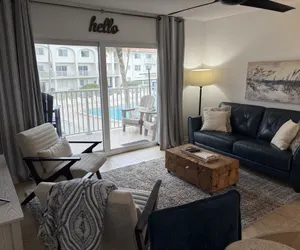 When you walk into our condo, you will feel at home. The soft and pleasant décor will make you realize that you’re at the beach and your vacation can begin. Step out on the balcony and you have a wonderful ocean view and overlook the large pool. There are two high top chairs and a table with two chairs on the balcony to relax and enjoy the ocean breeze.