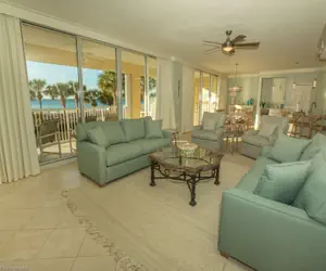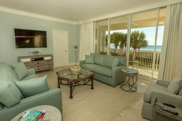 As perfect and spacious as this condo is inside, we still haven’t mentioned the best part of all: the balcony. The massive balcony has retractable shutters, two ceiling fans, and five plush outdoor chairs. From this balcony you are granted a one hundred eighty degree panoramic view of Destin’s beach, Oceania’s pool, and the Gulf of Mexico. You are so close to the water you can taste the salt in the air.