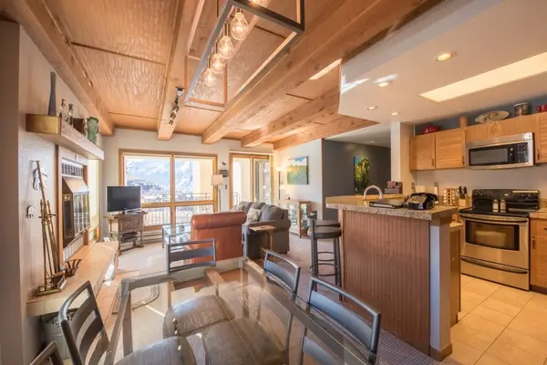 Striking views of Mt. Crested Butte and the southern mountain range are the centerpiece of this 2BR/2BA 3rd floor residence. Open the sliding glass doors in the living room and master bedroom to hear the babble of Wood Creek below. Watch your family play tennis right across the courtyard from your own private balcony and cheer them on. Granite countertops and stainless steel appliances add an elegant touch to the kitchen, and quaint antiques can be found throughout the residence. Grab a book from the units' lending library and sit by the cozy wood burning fireplace or just gaze at the beauty of the mountains out of the floor to ceiling windows in your living room. Right outside your front door is the outdoor hot tub, common grill, and a dining table overlooking Mt. Crested Butte. Full laundry facilities in unit. Sleeps 8 comfortably with a King bed in the master bedroom, and a Queen and bunk bed in the guest room. A Queen sleeper sofa is available if additional private sleeping quarters are required. Outdoor entry access.