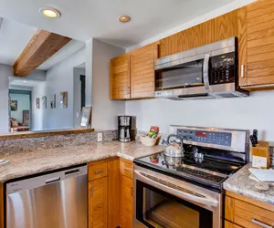 This exquisite 3BR/3BA corner residence has been recently remodeled in a handsome Mountain Modern theme. Quality craftsmanship throughout that incorporates a beautiful blend of reclaimed lumber, hand crafted gun metal paneling, natural stone tiles, all new fixtures and appliances. With a very open and airy floorplan centered around a wood burning fireplace, this unit is great for entertaining with updated electronics and high end furniture. From the private balcony is the vista to the North and West off Gothic Road. Full laundry facilities in unit. Sleeps 8 comfortably with a king bed in the master bedroom, a king bed in the master guest room, and a queen and 2 twins in the guest room. A sleeper sofa is available if upper bunks are not ideal for the additional adults in your party. Outside entry access.