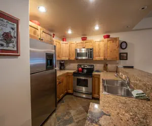 The unit has a rustic, western-themed feel, but is perfectly blended with modern appliances in the kitchen, allowing you to cook up your favorite meals with ease.