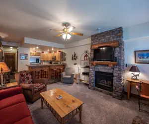 Just across the street from the lifts, these studio to three bedroom units are fully furnished and equipped with a kitchen, fireplace, private balcony, cable television and telephone.