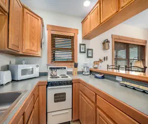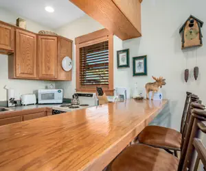 Step inside, and you'll find that every inch of this cozy but efficient condo carries that same charm and rustic character, featuring unique mountain wildlife themed decor. In the living area, you'll find a comfortable sleeper sofa, recliner, electric fireplace, and flat screen TV. The well-appointed kitchen is perfect for easy meal preparation, and the bedroom suite has a King size bed, window AC, and a private bathroom with shower. We know you'll find yourself at home in our quaint little corner of Rocky Mountain paradise!