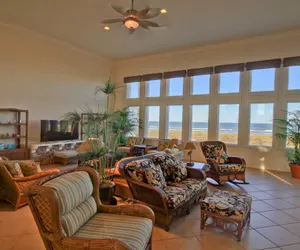 Manu Kai is an elegant beachfront retreat designed for larger families or two families traveling together. This 6-bedroom, 6-bath private home offers over 5,000 square feet of beautifully decorated living space and an impressive 100 feet of direct Gulf frontage, placing you right on the sand. Expansive windows and wide balconies fill the home with natural light and create a true sense of beachfront living.