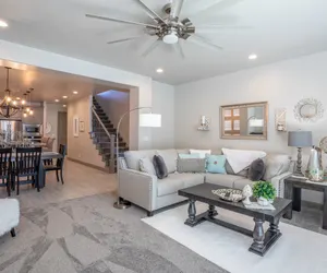 Fun At The Ledges is a spacious 4-bedroom, 4.5-bathroom, 2,692 sq ft villa ideally situated just steps away from the 18th fairway of the Ledges Golf course. This well-designed property boasts a large kitchen and two outdoor living spaces, providing ample room for everyone to enjoy. The main level features the master bedroom and a fantastic, well-equipped kitchen stocked with cooking utensils, making it convenient for guests to dine in during their vacation. Step out onto the lower back patio, complete with a BBQ and outdoor dining area for al fresco meals. Upstairs, there's additional outdoor patio space on the upper balcony, featuring a seating area with lounge chairs to relax and enjoy one of the best views of Snow Canyon at any time of the day.