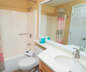 With a King bed in the master bedroom, 2 sets of bunk-beds in the second and a queen sleeper sofa in the living room, this unit can easily accommodate up to 8 people.