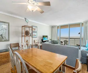 DIRECT BEACH ACCESS The Amazing, Oceanfront Views of the Atlantic Ocean from the two balconies our three-bedroom condos have to offer are Priceless! These condos come with a fully equipped kitchen for you to prepare meals when you don’t feel like venturing out on the town to try one of our local restaurants. The large living area boasts views for miles and provides seating for all guests to enjoy time together while on vacation. The oceanfront bedroom has a balcony with seating, features a King Bed and offers a full bathroom with a shower/tub combination. Another bedroom has a queen bed, and 2 twins are located in the third bedroom. They share a full bathroom with a shower/tub combination along the hallway. There is a half bathroom located in the main hallway, as well as a washer and dryer for your laundering needs. Additional sleeping arrangements include one sleeper sofa in the living area. The living area and bedrooms all have flat screen TVs for your viewing pleasure. These living spaces are set up to be a home away from home while enjoying the Beach!