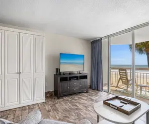 DIRECT BEACH ACCESS The Amazing, Oceanfront View of the Atlantic from the balcony of our one-bedroom condo is Priceless! These condos come with a fully equipped kitchen for you to prepare meals when you don’t feel like venturing out on the town to try one of our local restaurants. The large living area boasts views for miles and provides seating for all guests to enjoy time together while on vacation. The bedroom features a King Bed with a full bathroom shower/tub combination. There is a bathroom located along the hallway with a shower stall. Additional sleeping arrangements include a sleeper sofa and a murphy bed. There is a washer and dryer for your laundering needs located in the hallway as well. The living area and bedroom have TVs for your viewing pleasure. These living spaces are set up to be a home away from home while enjoying the Beach!