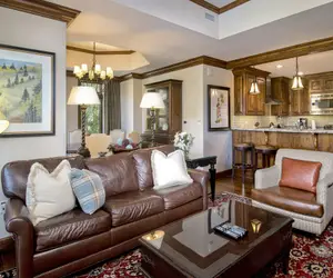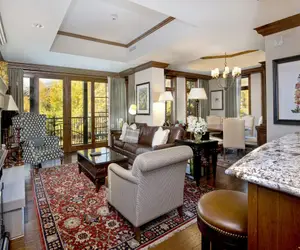 This is the world renowned Vail Valley. The mountain-side Ritz Carlton is supremely situated in Lionshead Village offering upscale luxury accommodations and premiere accessibility to some of the best recreation in North America. The Ritz development here is true to brand and exemplifies the highest standards of elevated quality living. The elegantly refined, classically contemporary, second-floor penthouse condominium at #212 boasts splendid views of the Aspen-studded alpine village. Dark wooden framed North facing picture windows provide abundant afternoon light. This unpredictably charming, bright and cheerful residence exceeds all expectations of creativity, convenience and comfortability. Hardwood flooring throughout is accentuated by Persian rugs that add just the right amount of color. The gas fireplace centers the living space with the warmth of true welcome. There’s a dining enclave encircled by floor to ceiling windows creating an atmosphere of spaciousness and natural splendor.