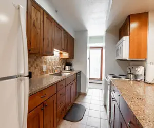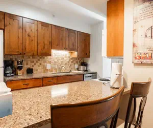 This 2-bedroom suite features 1000 square feet of living space; one king and two twin beds and a sofa sleeper; full kitchen; in-unit washer/dryer. Ski all day and return to the condo and soak in the two outdoor hot tubs or sun on pool deck. For stays of 1,2,3,4,5 nights a checkout cleaning fee of $200 will be added to the cost of any reservation. If you stay 6 nights or more, the checkout clean is waived. This residence does not have air conditioning.