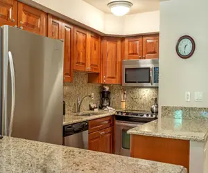 Lionshead Square Lodge is adjacent to the Lionshead gondola, so adventure is a short walk, in any direction, at any moment. Get out and enjoy! North Tower #282 offers more than 1000 square feet of living space, including a master bedroom with a comfortable king bed, and a second bedroom with 2 twin beds. This residence is beautifully appointed with granite countertops, lovely finishes, and high end showers. There is a fabulous workout room just down the hallway and a secluded hot tub and sauna. A full-size swimming pool and hot tubs are available for your soaking and splashing pleasure at the neighboring Lionsquare Lodge, as is the delicious El Sabor Restaurant. Layout of the Interior: 2 BR/ 2 BA