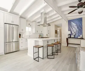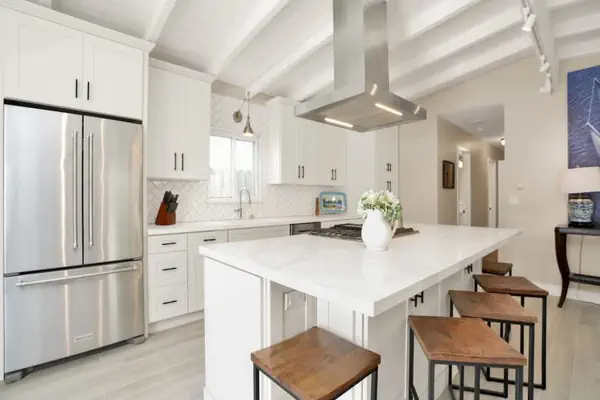 Stepping back in the property there is a quaint dining room just off of the all-white, newly remodeled galley kitchen. Stacked laundry unit is right off of the kitchen, a convenience not always found in beach homes.