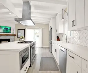 Down the hall are 3 bedrooms and 2 freshly remodeled full bathrooms. 3 TV's- Living room and first 2 bedrooms.
