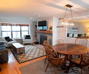 This beautiful mountainside unit is located a short walk from the top of the A+B Base Quads. It can sleep up to 11 people and features a King bed in the master bedroom, a queen bed in the second bedroom, and a set of Queen over Queen bunk beds plus a twin bed in the third bedroom. There is also a queen sleep sofa in the living room. The unit has newly remodeled bathrooms and hardwood floors, making it a wonderful choice for your family vacation. It is also conveniently close to the Winterplace hot tubs (open winter only).