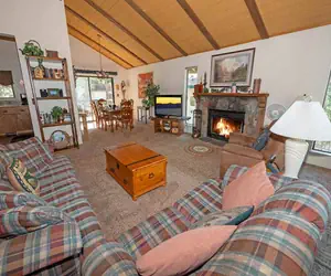 This Austrian style chalet offers the perfect romantic getaway in both summer and winter. This two bedroom has a peek a boo lake view, a wood burning fireplace two decks from which to view the forest or spectacular sunsets over the lake. This home features a small children's playroom off of garage area. As of June 30, 2021 this home will only be available for 30+ night rentals.