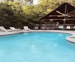 Unwind and soak up the serene Smoky Mountain ambiance in the peaceful outdoor oasis. The covered deck is perfect for relaxing on the porch swing, while the charcoal grill is ready for a delicious cookout. Take a dip in the sparkling pool, accessible via a short walk from the cabin. And, as a bonus, enjoy a rejuvenating soak in the hot tub under the stars - the ultimate way to unwind after a day of exploring the Great Smoky Mountains.
