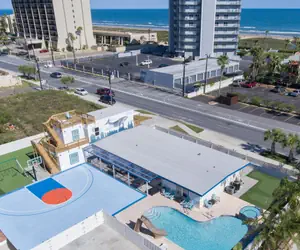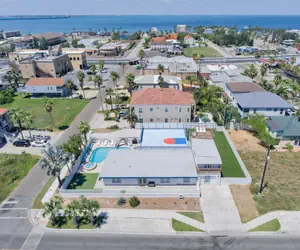 Half-size Basketball Court with a professional size 72”, in-ground, tempered glass basketball hoop. The basketball court can be used for special events and also has a mobile Pickleball Net. One of a kind professional design outdoor golf putting green and chip shot practice for adults and children. Special feature Typhoon Pool Water Slide and poolside basketball hoop. Oversize heated pool with sitting bench in the water. The pool is newly re-plastered. The depth of the pool is from 3 ft to 7 ft. Having a 7ft deep pool is very unique in SPI and can be used for special purposes. The pool is one of the largest for vacation rental houses on South Padre Island! The pool was just completely redone and a Brand new hot tub was added with a waterfall! Features one of a kind artificial turf sports court for fun activities like soccer, volleyball, & football all with a rebounding net that stops the ball even when you miss the goal! Every bedroom has its own cable TV. There are a total of 11 Flat Screen TVs in this home! Free WIFI! Guests can watch all their favorite TV programs, spend time on social media and enjoy online entertainment in the comfort of their own bedroom. Every bedroom is equipped with a desk or mini workstation for guests to do any type of work. Provide security cameras on the outside of the home ONLY to monitor the parameter. (Cameras are not inside the home.) 1915 Gulf also entails beautiful hand-painted murals by local artists and more than 10 different types of regional plants that surround you in a private oasis!