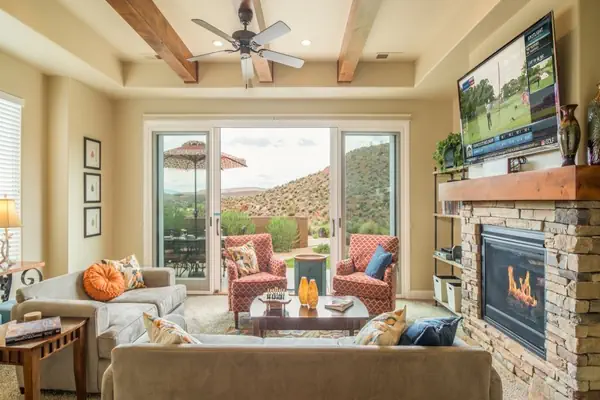 Family Room: Couch and love seat with pull out queen sofa sleeper, two chairs, flat screen TV, and fireplace. Walk out to the patio with amazing views of the Coral Canyon Golf Course.