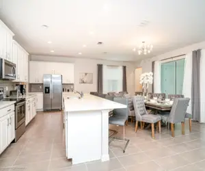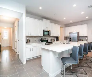 Solara Resort is a beautiful 5 bedroom, 4-1/2 bath home that was built in 2018. It is professionally decorated and has all the comforts of home. The kitchen is modern with new stainless steel appliances and granite countertops. There is dining seating for 8 and additional seating for 4 at the breakfast bar. All cookware and utensils are provided for your convenience.
