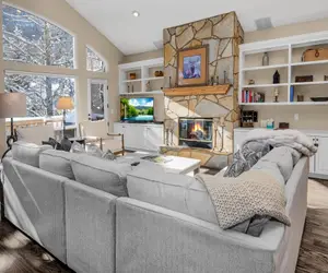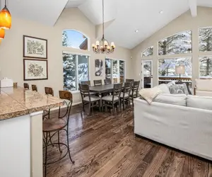Why share walls with other travelers? This lovely four bedroom, three and a half bath single family home in Vail, Colorado is a harmonic blend of seclusion and location. Marvel at the great room with vaulted ceilings, hardwood floors, a gas fireplace, and large south facing windows that open to wonderful views of the soaring cliffs and waterfalls of East Vail. A large, newly extended deck with stainless steel gas grill provides a relaxing retreat on sunny days.