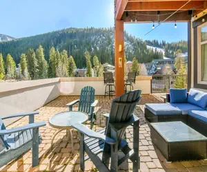 Nestled in the heart of Winter Park Resort, this charming condo caters to a party of seven, presenting an ideal haven for mountain enthusiasts. The fully stocked open kitchen, perfect for breakfast preparation and bar-based entertaining, sets the stage for delightful gatherings. This corner is truly unique with a spacious private patio off of the living room beckons with stunning slope views and a direct walkway to the hot tub area, offering a serene post-adventure escape.