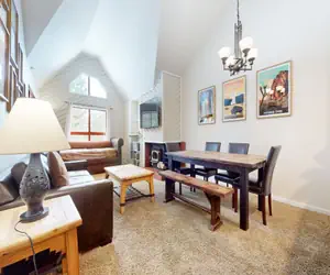 This slopeside Mammoth Mountain condo, near Juniper Springs Lodge, is a short walk to the lifts at Eagle Lodge and offers excellent amenities for an easy stay. This is chic condo offers a spacious layout with underground shared garage parking so you don't have to worry about the snow, parking it and leave the car as you can walk or grab a shuttle to everything needed! The living room features a cozy wood-burning fireplace, Twin trundle and day bed, large flatscreen Smart TV, and is perfect for a group traveling with can enjoy their own private nook in the enclosed patio where you can watch the winter wonderland outside, and mountain views. This area offers a sitting/playing area, TV, games and more, the kids will love it! There is a King bed in the master with attached private bathroom and large 65" flatscreen Smart TV. The bathroom is jack and jill style with access from the master or the hallway and features a tub/shower combo. The kitchen is fully stocked and comes with all the appliances you will need for a home cooked meal. There is even ski and boot storage just inside the condo, and additional amenities include a portable AC unit, luggage racks, baby high chair and more. This condo comes with underground parking for one vehicle(garage clearance is 6' 6"),as well as a second space available on a first-come, first-serve basis, and elevator service to your floor making it accessible. The Aspen Creek community offers a swimming pool, numerous outdoor hot tubs, sauna, BBQ area and common area laundry.All guests receive complimentary full access to Snowcreek Athletic Club to enjoy facilities including indoor heated pool, steam/sauna, full fitness facility, yoga, pilates and cycle studio and more. Guests will be provided two parking passes. If more parking is required than what is allotted, feel free to call our office for alternative options.This condo sleeps a maximum of 4 people and no smoking is permitted. Pet are not allowed.There are no stairs to this unit (elevator access) and no stairs inside. PLEASE NOTE: This home utilizes video surveillance monitoring at the front door. Our calendar is updated in real time. (Certified Property #: TOML-CPAN-13813) Unit Code = ACR311