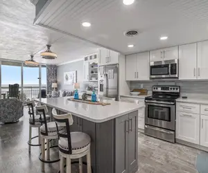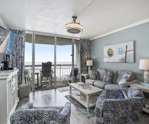 DIRECT BEACH ACCESS The Amazing, Oceanfront View of the Atlantic from the balcony of our one-bedroom condo is Priceless! These condos come with a fully equipped kitchen for you to prepare meals when you don’t feel like venturing out on the town to try one of our local restaurants. The large living area boasts views for miles and provides seating for all guests to enjoy time together while on vacation. The bedroom features a King Bed, and it offers a full bathroom with a shower/tub combination. There is a bathroom located along the hallway with a shower stall. Additional sleeping arrangements include a sleeper sofa and murphy bed in the living area. There is a washer and dryer for your laundering needs located in the hallway as well. The living area and bedroom have TVs for your viewing pleasure. These living spaces are set up to be a home away from home while enjoying the Beach!