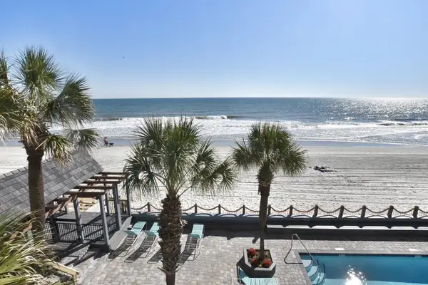 Oceanfront Balcony. There is a spacious pool deck for sunbathing under the tropical palm trees, an