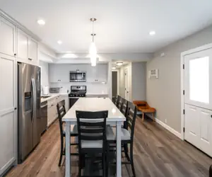 The kitchen has plenty of counter space for preparing food and extra storage. The master bedroom has a queen bed with an en-suite bathroom. The second bedroom has a bunk bed with a full size mattress on bottom, twin on top and an en-suite bathroom as well. There is a shared laundry room complete with a washer and dryer. For your convenience, there are two parking spots in the front driveway or you can use it as an oversized patio.