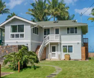 Located on Kauai's beautiful north shore, this oceanfront home plus cottage is surrounded by lush, tropical foliage. The main house features a spacious living room upstairs as well as a comfortable family room downstairs.