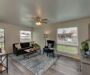 The living room is comfortable with a smart TV for streaming (no cable), and the house does have high-speed wireless internet through Spectrum.