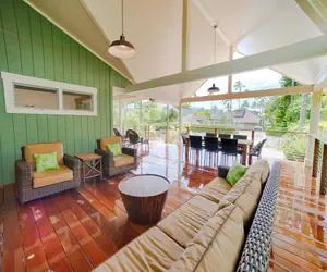 The large grassy back yard sets the perfect stage for taking in the brilliant Kauai nighttime sky or a ripe opportunity to test your green thumb on the various fruit trees. Being just steps from the beach and town, the home's location couldn't be more ideal.