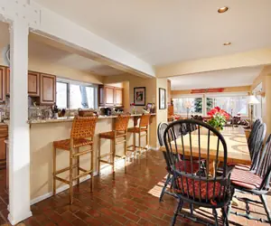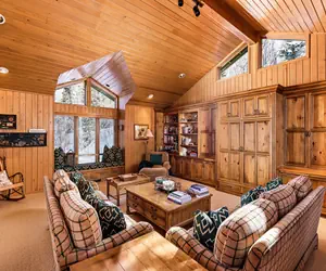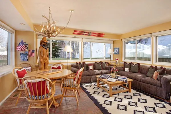 • With two living rooms, a large upstairs office, a chef-ready kitchen with a cocktail bar, and a dining area that seats 12, it’s perfect for entertaining, holiday meals, or après-ski evenings.