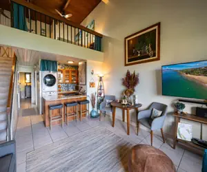 The unit boasts a king bed in the primary bedroom and multiple sleeping configurations in the second loft bedroom. The second bedroom can be configured into two single beds or a king bed. We just ask that you give your preference when you book this unit. The living area also has a pullout couch with a super comfy queen bed. The unit has two air conditioning units for your comfort, however, Maui’s amazing trade winds allow for a great cross breeze plus there are fans in all of the rooms to help increase the air flow.